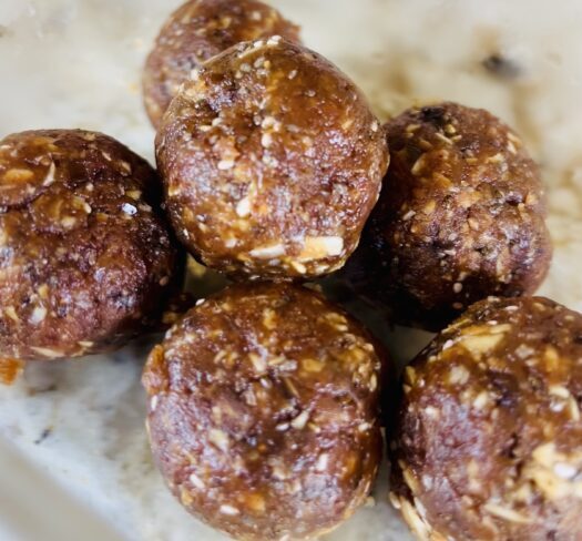 Adapted from eatingwell.com 6 large Medjool dates 2 1/2 tablespoons water 2 tablespoons pure maple syrup or honey 1 teaspoon vanilla extract 3/4 cup peanut butter or almond butter 1/2 cup rolled oats 2 …